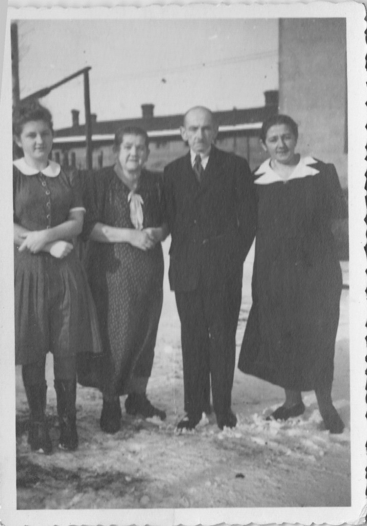 Hrabovští u činžáku ve Vítkovicích - zleva Eleonora Hradilová, má teta; Aloisie Hrabovská r. Vysloužilová, má prababička; Ludvík Hrabovský, můj pradědeček; Olga Hradilová r. Hrabovská, má babička.